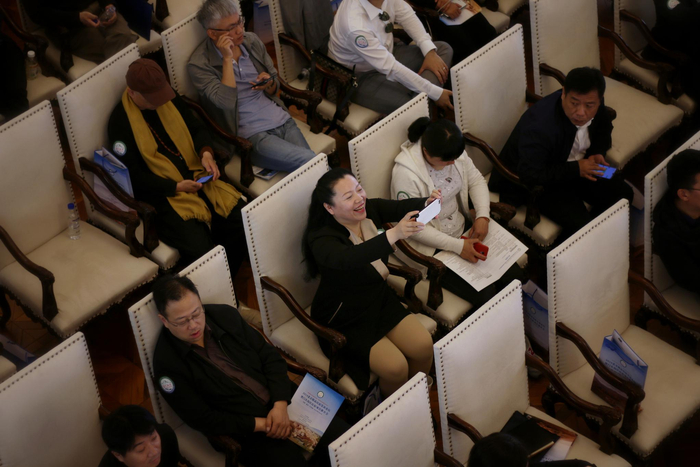 参会者用手机拍摄记录演讲内容。实习生 陈婉婷 摄