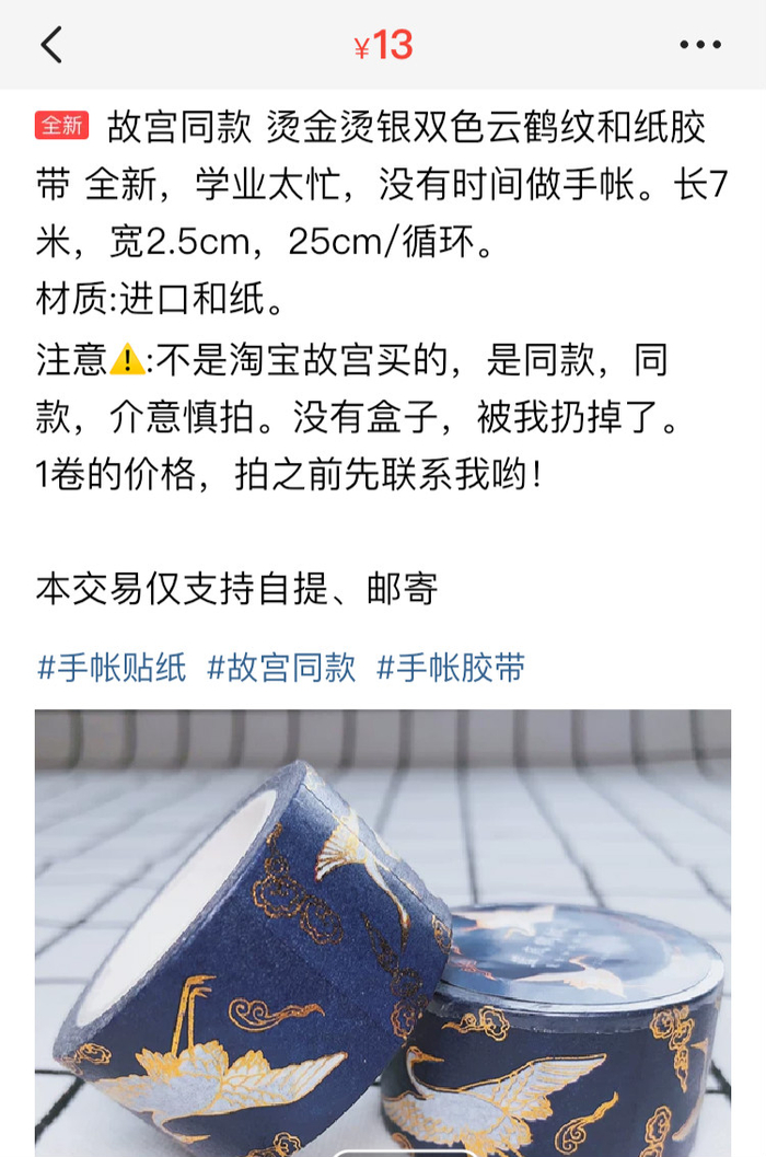 新京报记者 郑艺佳 图片 闲鱼截图、故宫淘宝官方旗舰店截图 编辑 李铮 校对 柳宝庆