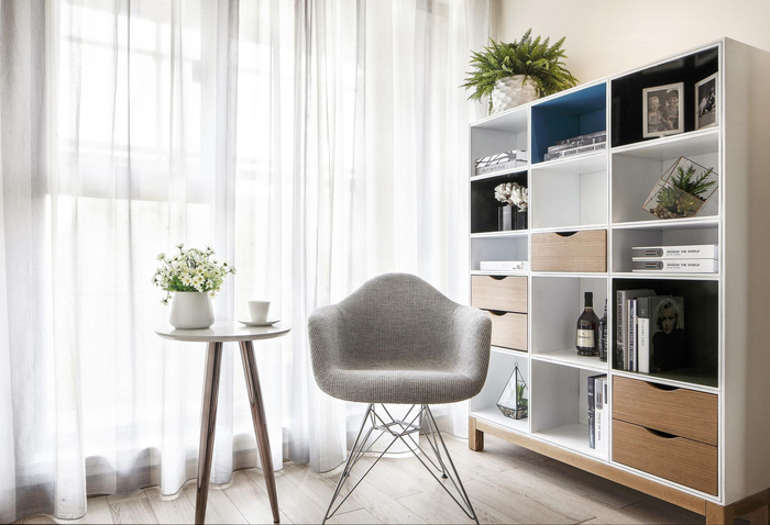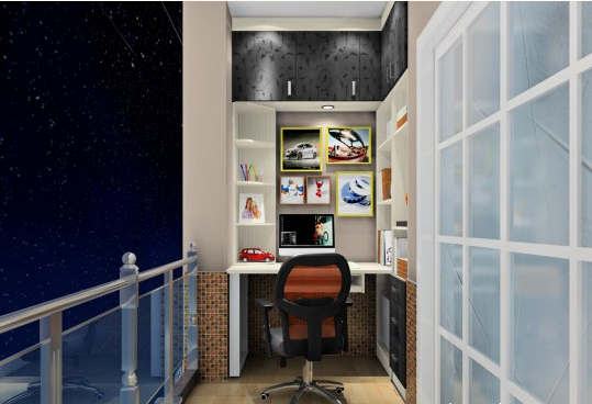 拉上推拉门,阳台就变成一个私密的小空间,设置一张书桌和一个书柜就能形成一个小书房,打造出一个属于自己阅读或工作的小空间。当然这样的设计最好在封闭式阳台,一方面避免书柜、藏书等损坏,另一方面也防止风沙、灰尘等侵蚀。