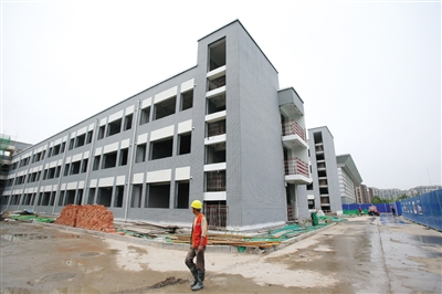 今年5月8日,记者再次来到清华附小昌平学校天通苑校区,学校和旁边的体育场接近改造完成。施工单位现场负责人张恩硕介绍,教学楼的外立面做成了灰砖的样式,和清华附小其他校区统一风格。