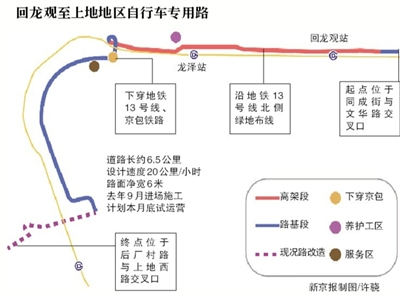 在自行车专用路修通之后,可以方便京藏高速西侧龙域环路附近居民前往龙泽站乘坐地铁。