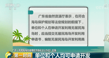 广东省自然资源厅副厅长 海洋局局长 屈家树:中间明确了对无居民海岛的开发利用,单位和个人都可以申请,但是我们在意见里面也明确了有关的条件。