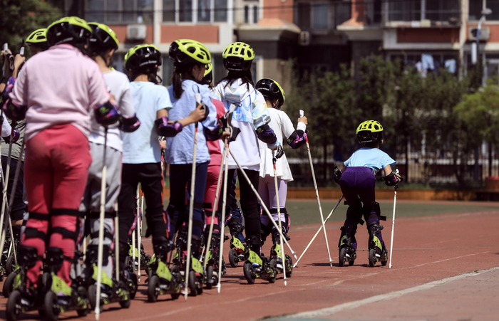 据悉,北京首批52所冰雪运动特色校多数已开展相关教学,冰雪运动“旱地化”成为多校解决场地难题的通行做法。近年来北京共有46万余名中小学生参与冰雪进校园相关活动。