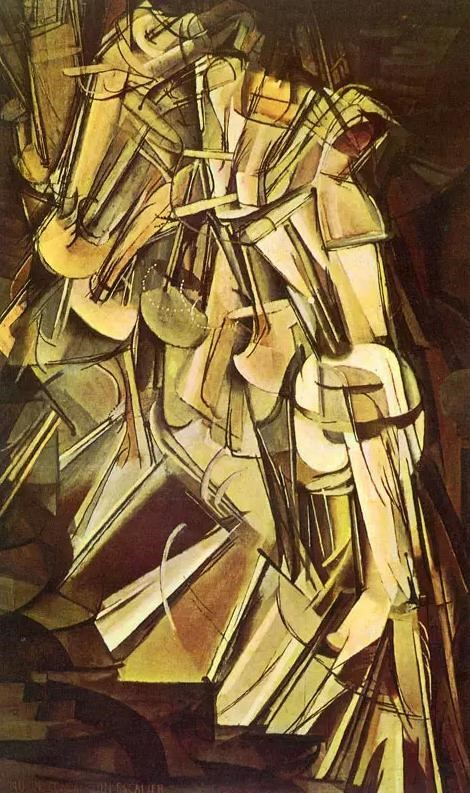 1912年,杜尚的作品《下楼梯的裸女》(Nude Descending a Staircase)在被巴黎“独立画展”(Salon des Independants)拒之门外后得到美国画家沃尔特·帕克(Walter Paker)的赏识,被带往美国参加军械库展览会(Armory Show,正式名称为国际现代艺术展览会International Exhibition of Modern Art),从此一举成名。画作中,杜尚首次将运动元素与绘画融合,用立体主义的手法拆解裸女,给人一种表面杂乱无章的画面感。以运动为幌,作品在视觉上弱化观众对绘画本身的关注,当观众试图凑近画作寻找一个正在下楼的裸女时,眼球的转动与作品本身结合,将审美变成了一场运动。