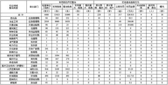 在部门层面,检查生产经营单位、场所4480家,发现隐患13425条,其中重大隐患10条,责令限期整改228家,责令暂时停产53家,关闭取缔9家,立案317起,处罚金额526.813万元,追究刑事责任8人,曝光非法违法企业、个人18起。