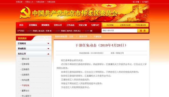 中共怀柔区委网站截图