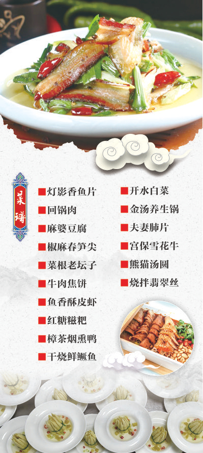 昨日,记者从活动现场了解到,经过在13日举行的全民公开投票,最终选出了灯影香鱼片、回锅肉、麻婆豆腐、椒麻春笋尖、菜根老坛子、牛肉焦饼、鱼香酥皮虾、红糖糍粑、樟茶烟熏鸭、干烧鲜鳜鱼、开水白菜、金汤养生锅、夫妻肺片、宫保雪花牛、熊猫汤圆、烧拌翡翠丝16道菜品招待客人。