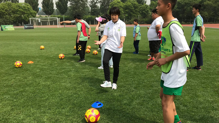 邵佳一、温丽蓉等前国脚向特奥儿童授艺