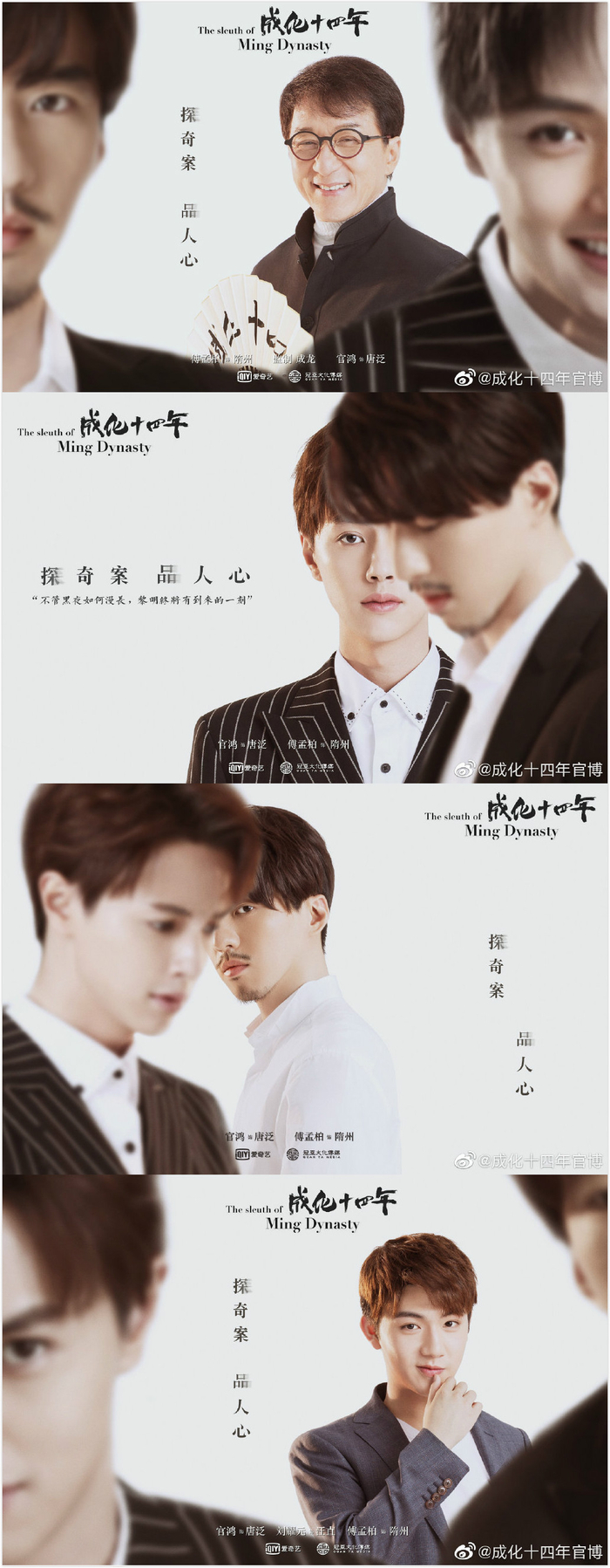 新京报讯(记者 张赫)5月15日,由成龙监制的青春美食探案剧《成化十四年》宣布了主演阵容并发布了时装版海报。海报中,成龙携主演官鸿、傅孟柏、刘耀元、王茂蕾、蔡珩、毛毅集体亮相。据悉,该剧已于2019年1月正式开机,拍摄已接近尾声,预计将在爱奇艺播出。