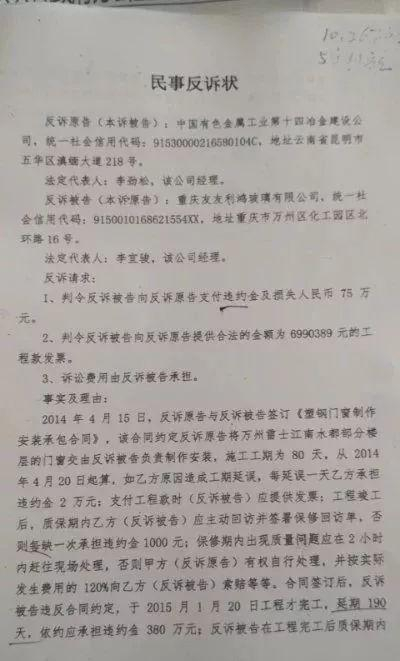 李富华与刘远生在重庆有工程生意往来,玻璃门窗完工后,刘留有90万元余款未付。李富华为此起诉刘远生,刘反而提起反诉,要求赔偿误工损失150多万元。