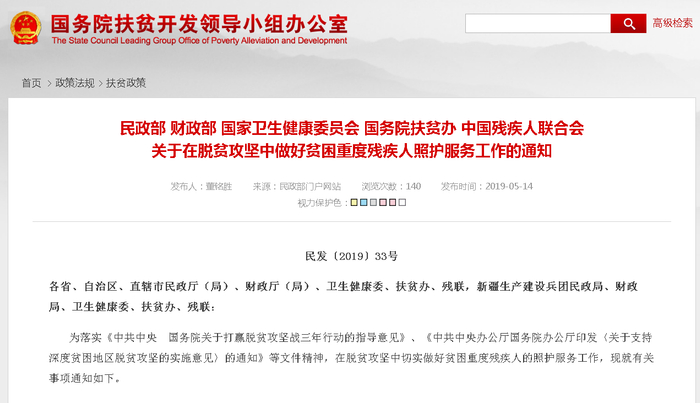 五部门发通知:扎实做好贫困重度残疾人照护服务工作
