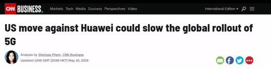 CNN还在报道中宣称,这会导致包括中国在内的全球5G业务延缓落地,因为被列入“实体清单”会打击华为的供应链,导致华为难以兑现与全世界签署的数十个5G商业合同,其中还包括欧洲的25个和中东的10个。