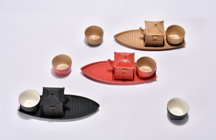 故宫文创产品将中国元素与创意结合,其中的茶具成为亮眼的创新产品之一,图中茶具创意取自《清明上河图》中的桥梁建筑、轿子等元素,藉以呈现汴京富庶兴隆的繁荣场景。