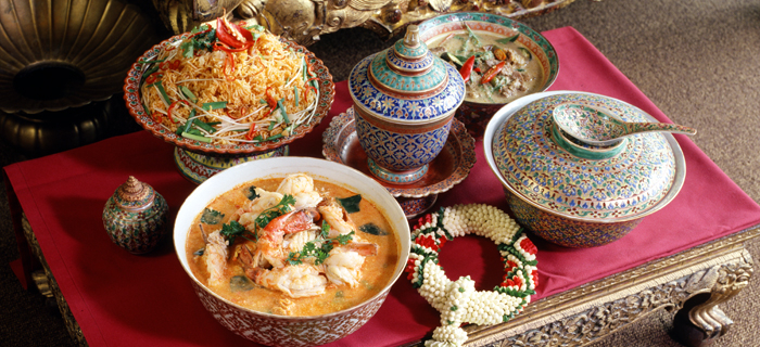 早期泰国人的传统用餐以芭蕉叶盛饭,再以手取饭菜进食。现在多数泰国人通常喜欢用叉子和勺子,以汤匙将菜肴与饭拌匀,然后再用餐叉辅助夹菜。
