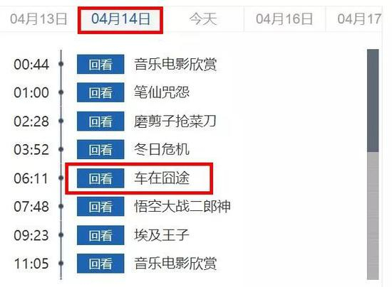 2019年4月14日《北京晚报》15版“今日电视节目预告”截图