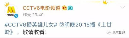 原标题:666!CCTV-6昨夜临时改播《英雄儿女》,无数网友点赞!