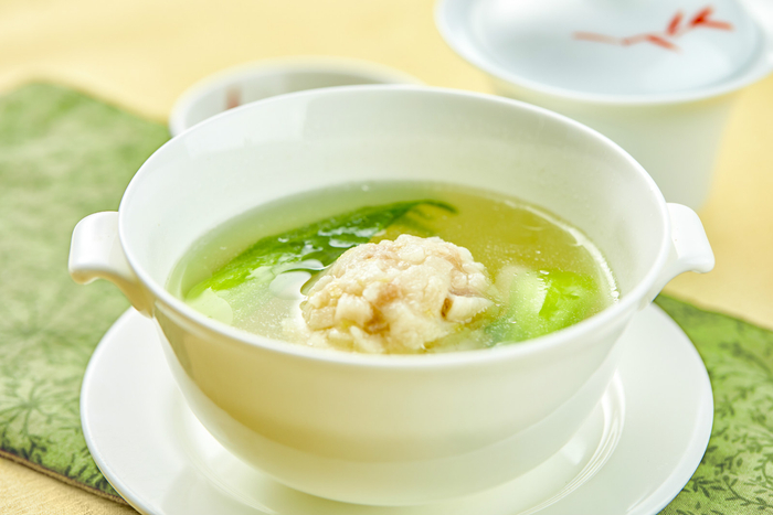 据王刚介绍,江团狮子头以江团鱼取代传统猪肉,更健康清新。制作过程中,需将江团鱼肉糜多次反复摔打出筋,再以江南文火慢炖,最是“江南鲜”。平桥豆腐羹则选取江南本地石磨盐卤点制的嫩豆腐,配以春笋、鸡肉、高汤等各类鲜品,经过多次传统勾芡手法封油,让平凡的豆腐也能变成神奇美味。