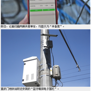 结合北京市互联网租赁自行车监管和服务平台,西城区在所有地铁站口和金融街三处互联网租赁自行车容易扎堆儿的地点安装了100套“蓝牙嗅探电子围栏”装置,可以实时监控50米范围内的共享单车,包括停放数量、是否属于未备案的违规投放单车以及单车堆积情况等。