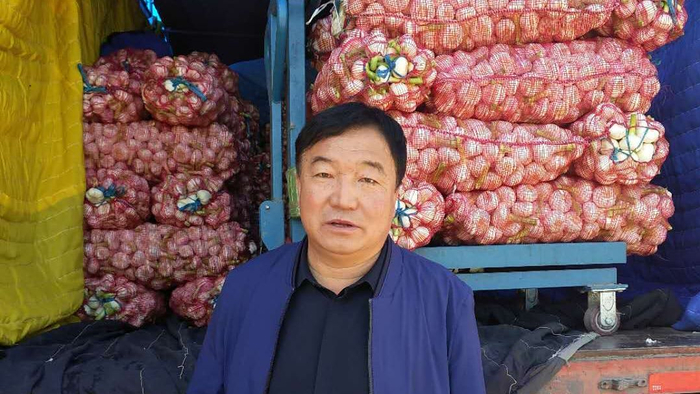 新发地“大蒜大王”周景臣。新京报记者 景啸尘 摄