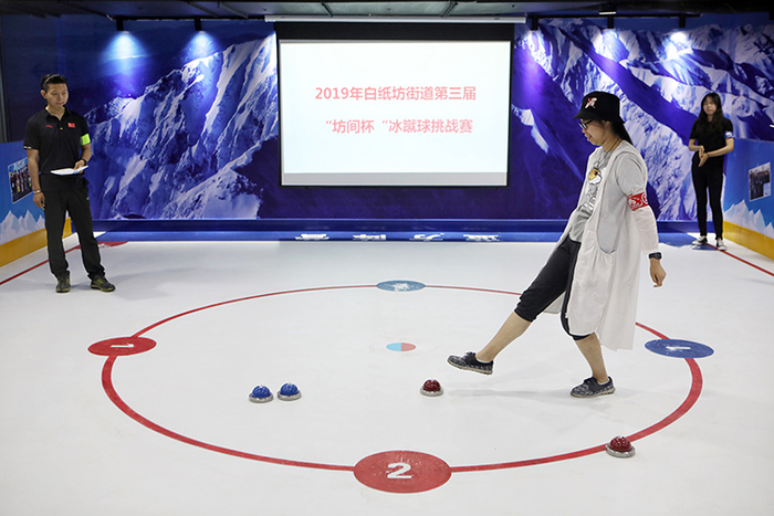 在冰蹴球体验区,白纸坊街道第三届“坊间杯”冰蹴球挑战赛正式开赛。今年的“坊间杯”冰蹴球挑战赛共有19个社区,近100人参赛,赛期将持续一个月。