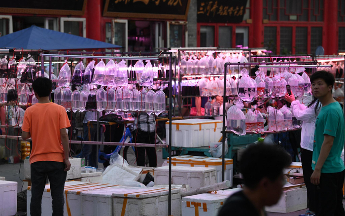 新京报讯(记者 王颖)位于东四环外的高碑店鱼市,可以说是目前北京最大的观赏鱼鱼市。夜市每周四最为热闹,天津河北山西等地的商贩都会汇集到这里,很多鱼友、鱼商都从这里购买观赏鱼以及水族产品。