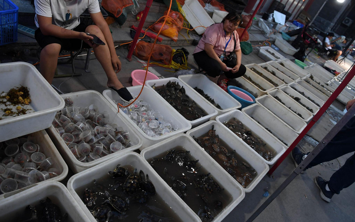 市场上不仅出售锦鲤、热带鱼,各种龟类也应有尽有,生意好的时候晚上8点就可以卖完回家,有时候要到凌晨2点才能卖完。