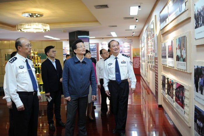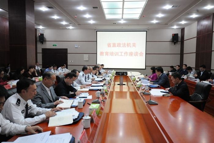 时光辉一行先后实地考察了学院校史陈列馆、特驾训练场、物证鉴定中心、警务训练大楼等地。随后组织召开政法教育培训工作和教育培训基地建设座谈会,并听取了警察学院工作情况汇报和省直政法部门教育培训工作以及教育培训基地建设应用情况汇报。