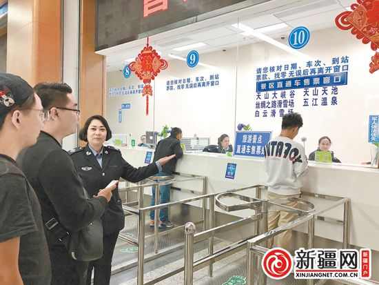 昨日,旅客在乌鲁木齐高铁国际汽车客运站售票窗口购票。(记者 李凯摄)