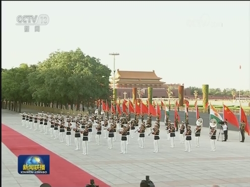 军乐团奏尼中两国国歌。鸣礼炮21响。