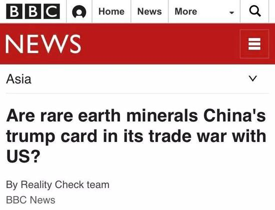 英国广播公司(BBC)也问道:“稀土会是中国对美贸易战中的一张王牌(trump card)吗?”