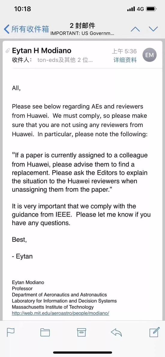 除了告知“不能使用华为员工作为期刊的同行评审过程的审稿人或编辑”,邮件还声称“可以让华为员工留在编辑委员会,只是不能处理任何文件,直到该公司从商务部黑名单中删除”。
