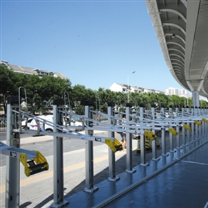 自行车专用路全程设置8个出入口,并与既有道路相连接,相邻两个出入口的平均间距为700米左右。为方便骑行者上下道,其中6个桥梁出入口坡道首次设置了自行车助力装置。