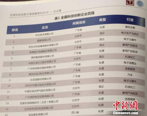 原标题:2019全国科技创新百强指数报告在京发布 华为居企业榜首