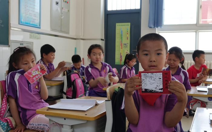 后白虎涧小学一年学生人手一本小人书。新京报记者 王纪辛 摄