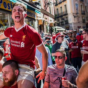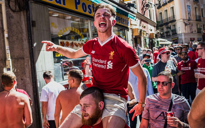 欧冠决赛在即,狂热球迷齐聚马德里街头。图/Osports
