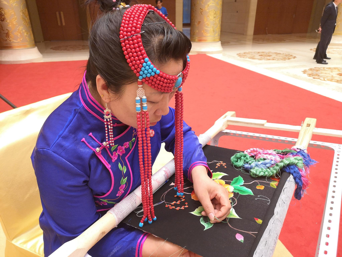 新京报快讯(记者 吴婷婷)今天,内蒙古自治区级非物质文化遗产——科右中旗图什业图王府刺绣与北京市民见面。据悉,以“奋斗逐梦·绣美山河”为主题的中国手工刺绣传承创新大会,将于2019年8月1日至2日在内蒙古兴安盟举行。