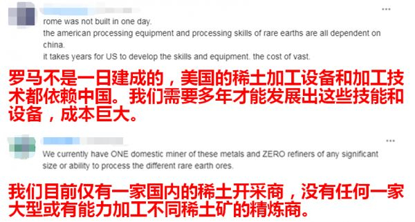 有网友指出,美国想要重建稀土加工能力耗时费力,代价将会很大。