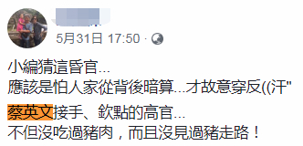 也有人怒骂:“蔡英文接手、钦点的高官。。。不但没吃过猪肉,而且没见过猪走路!”