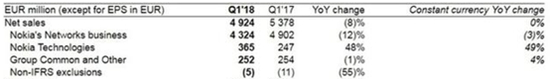 下图是诺基亚2018年Q1的财报,其中来自与Nokia Technologies的收入单季度达到3.65亿欧元,超过28亿人民币,一年下来也是百亿人民币级别的收入。