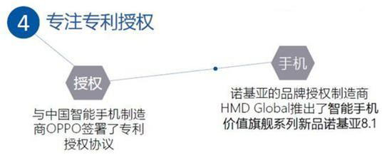 在诺基亚的2018年财报里,专门提到了一条“专注专利授权”,而且把2018年和中国的智能手机公司OPPO签署了专利授权协议作为主要业绩之一。