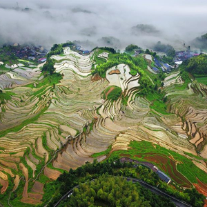 江浙地区许多地域名称都很美,云和县地处浙西南,素有“九山半水半分田”之称。千百年来,云和畲汉两族人民根据不同的地形、土质修堤筑埂,把终年不断的山泉引进梯田。