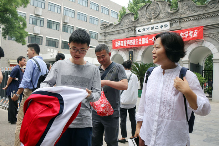 11时许,北京市二中考场外,聚集了许多等待考生的家长。