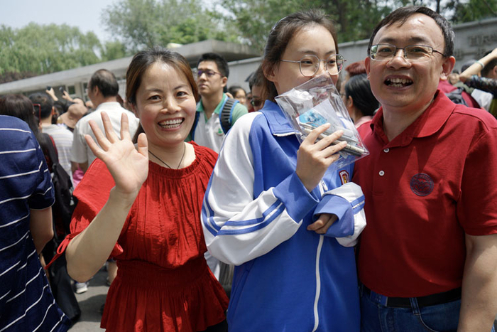 新京报讯 6月7日中午,许多家长们顶着烈日在学校门前等待孩子。11时半,高考第一场考试(语文)结束,考生陆续走出考场,许多考生状态较为轻松,回家准备下午的数学考试。据了解,北京此次语文考试作文题为“文明的韧性”与“2019的色彩”二选一,受访考生表示作文题不算太难。