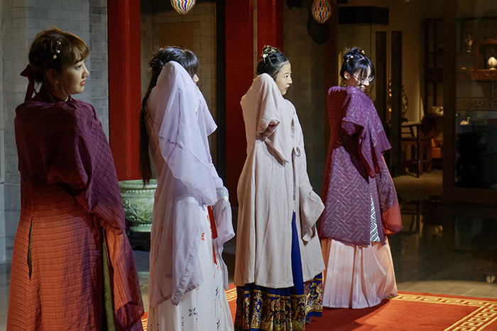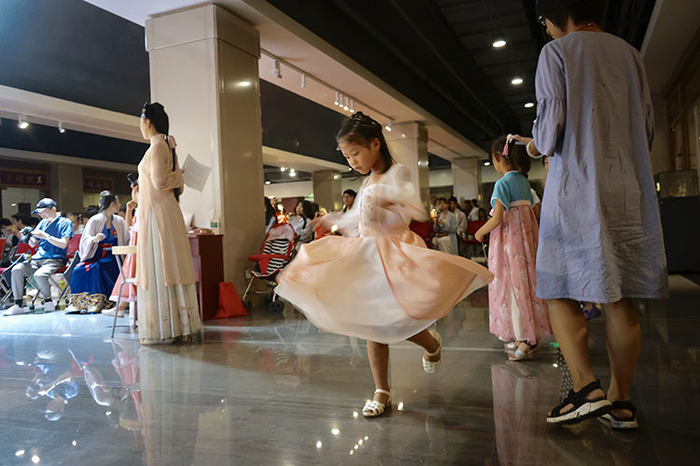 传统文化爱好者们身着汉服参加体验活动。