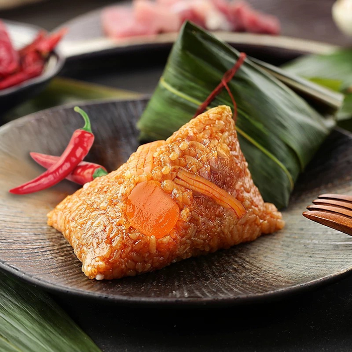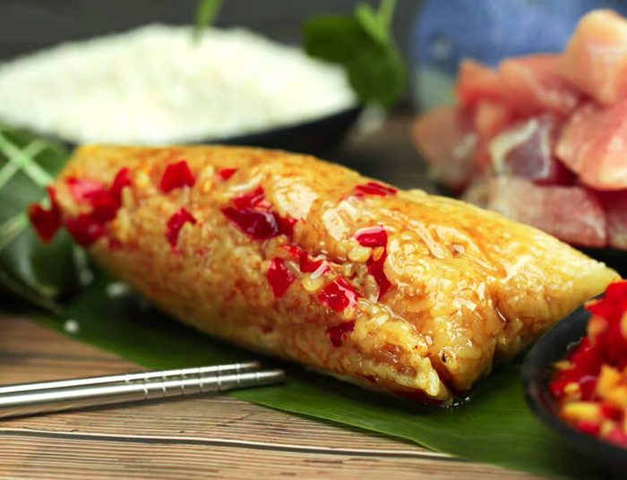如果吃不惯鸭肉,也吃腻了普通的肉粽,那不如来点新佐料,试试腐乳肉粽吧。这款粽子用腐乳汁腌制过的猪肉,搭配鸡汤和腐乳汁搅拌的糯米,再裹上粽叶“外衣”就完成了。