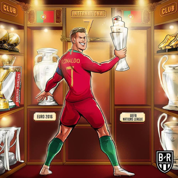 这是C罗率领葡萄牙队继2016年欧洲杯后,再度杀入洲际大赛决赛。比赛尾声,C罗仍然回到本方禁区参与防守。在一次头球解围后,他还大声提醒队友集中注意力。颁奖仪式上,C罗当仁不让地代表球队捧起了冠军奖杯。同时凭借半决赛的“帽子戏法”,C罗当选首届欧国联决赛阶段的最佳射手。