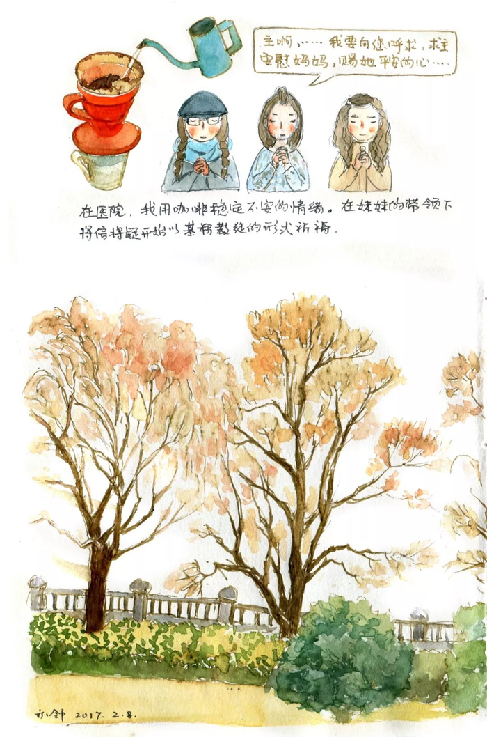 所以重要的并不是画画。它可以是任何一种表达的形式,文字,或者视频。重要的是与自己的对话,与亲人的对话。