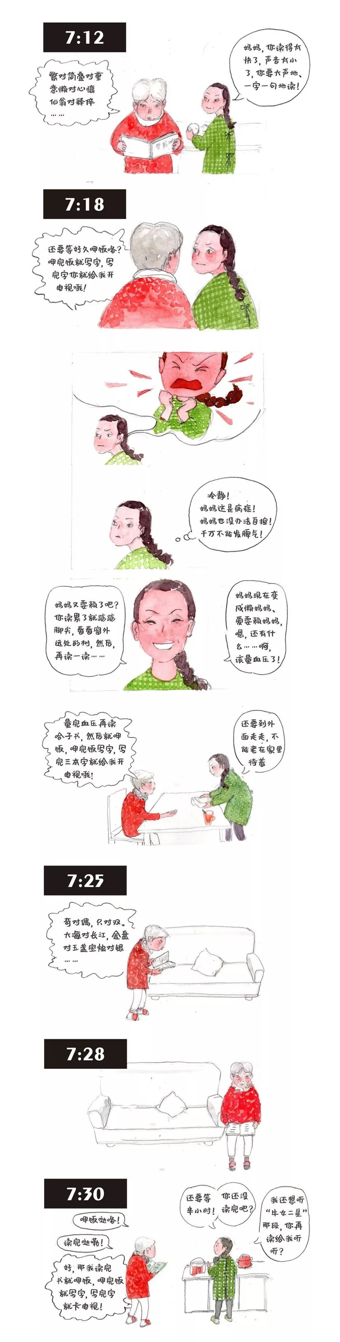 为了让妈妈多说话,三姐妹努力想话题。亦邻作品。