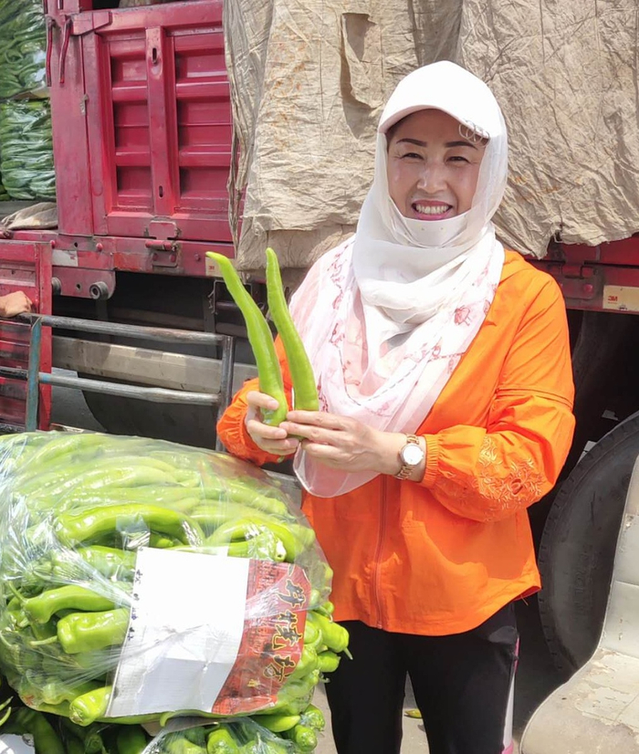 记者来到新发地时,王福娟头上裹着丝巾,正在高温下和伙计们一起打理着一车一车的辣椒。“我是2002年来新发地的,在这行一做就是17年。”17年前,王福娟和老公一起来到新发地批发市场做辣椒生意,对于当初为什么选择辣椒,王福娟告诉记者:“当时认真考虑了一下,有两个理由。第一,辣椒品类很多,算下来可以操作的有十几种甚至二十几种,我们的选择性很多;第二,辣椒耐运输、好管理、好储存,我们在中间环节会节省不少时间和成本。”