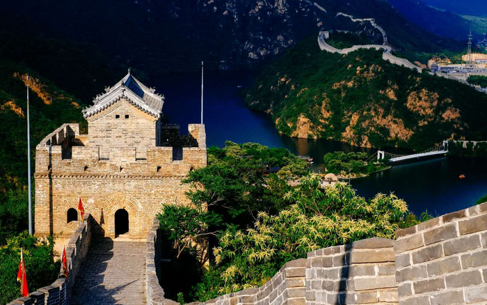 灏明湖水将三段长城自然断开,形成长城戏水、水没城垣的奇特景观,为二奇。